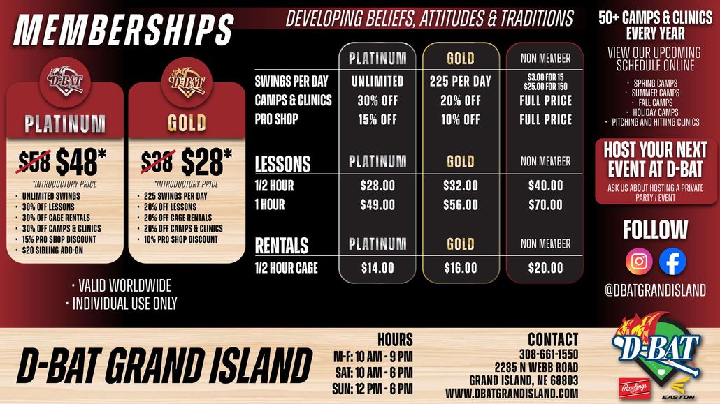 Memberships are valid at all D-BAT Locations WORLDWIDE and are for INDIVIDUAL use only. Sign up for the plan that fits your needs perfectly.